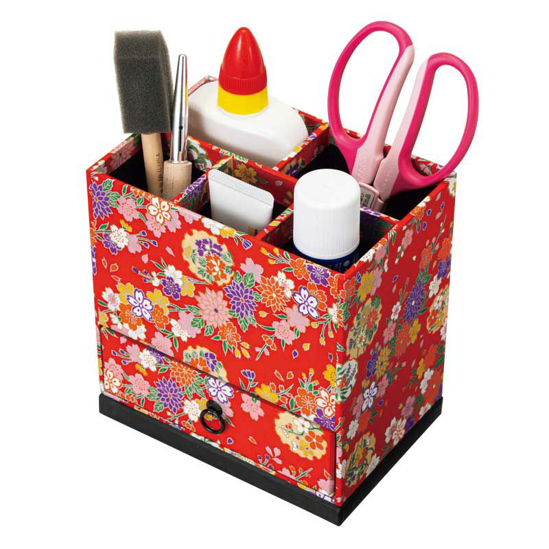 筆筒等用工具。櫻堀切的副資材也可以整齊收納。有點方便的收納物品。