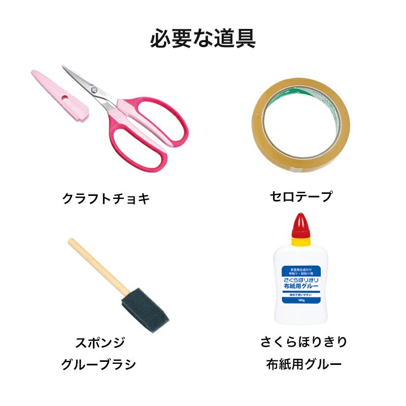 - 剪刀、透明膠帶、櫻花堀切布紙用膠水或家用膠水、海綿膠刷