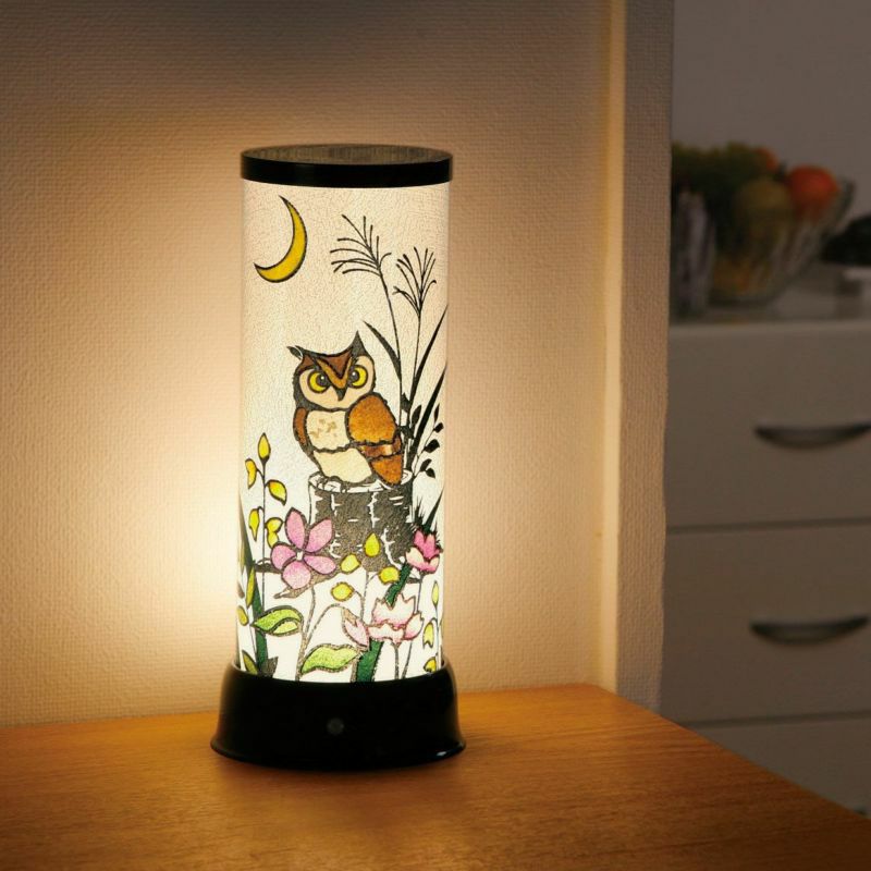 使用有模糊效果的和紙,溫柔呈現季節花卉和貓頭鷹。