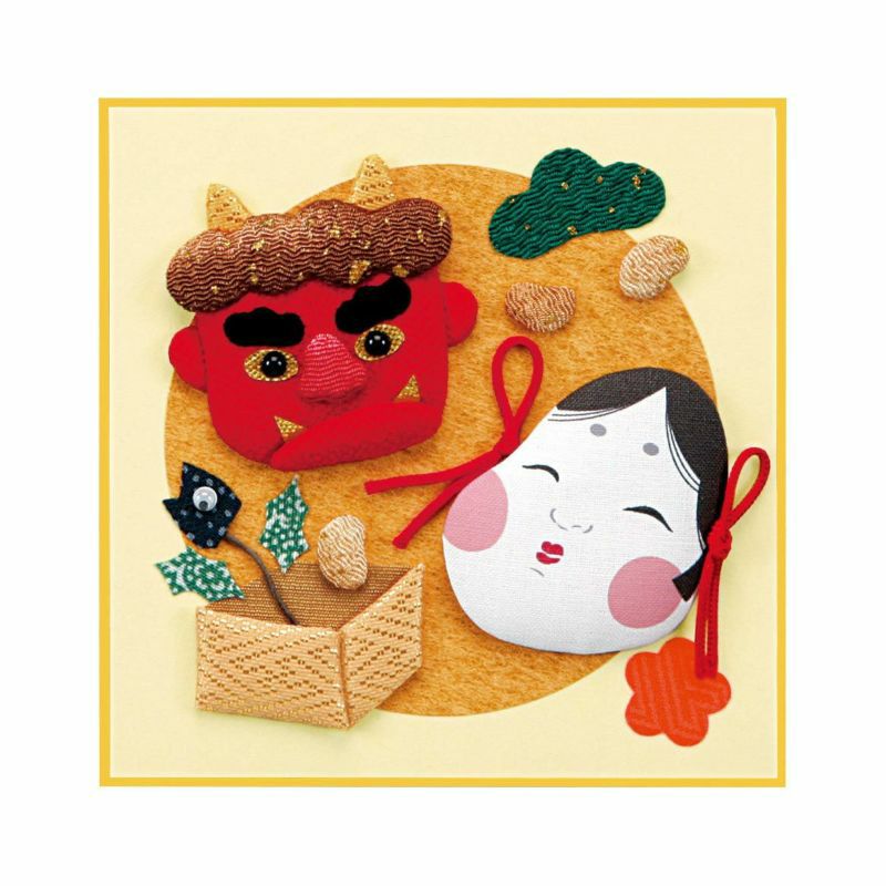 蓬鬆立體布押繪。慶祝春天開始的節分。
