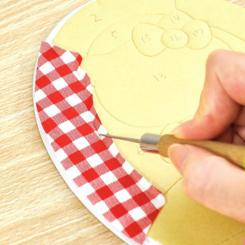 只需將指定布料用專用錐針固定在底板上即可,拼貼有9個部件。