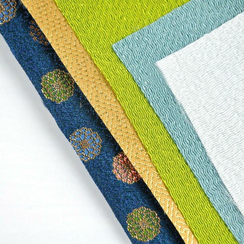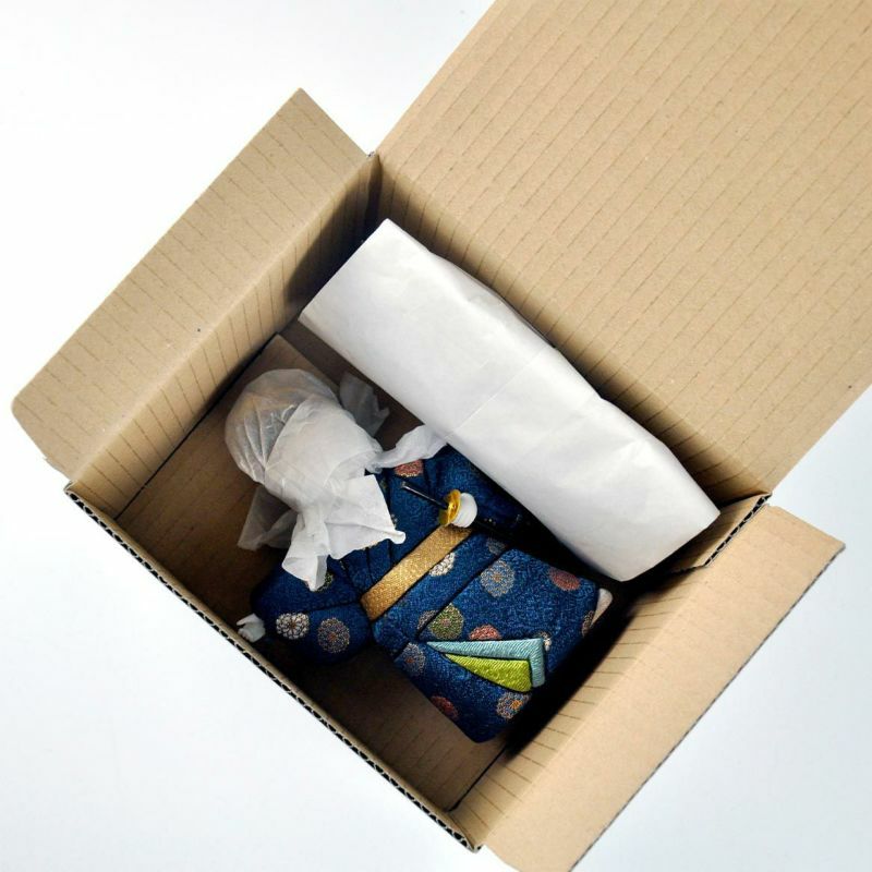 使用江戶時代誕生的美麗顏色「鐵紺色」以及裝飾「草花唐草地紋小菊」的金襴布料。