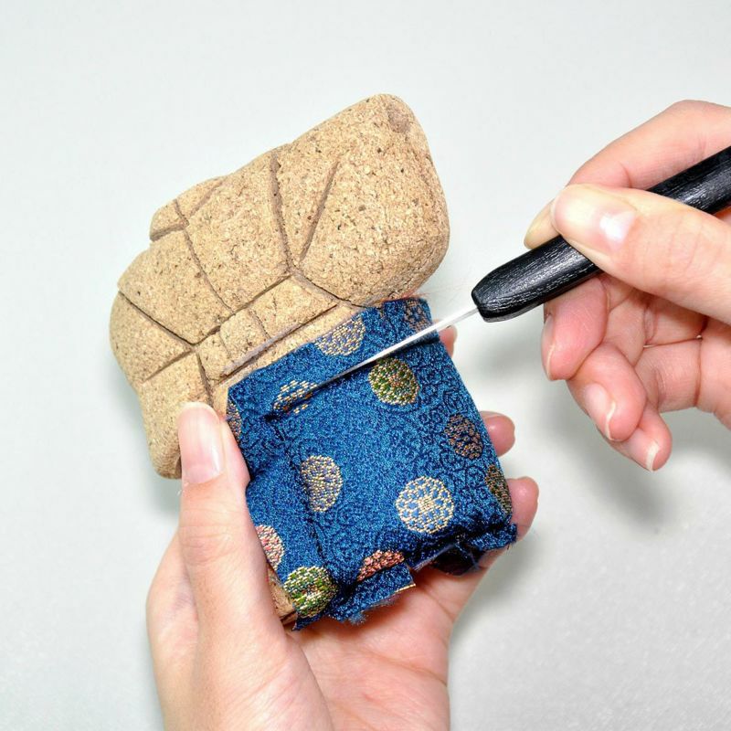 - 使用木目込鏟將布料嵌入溝槽,並用鋸刨剪剪掉多餘的布料。