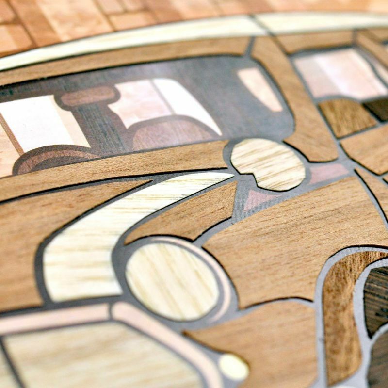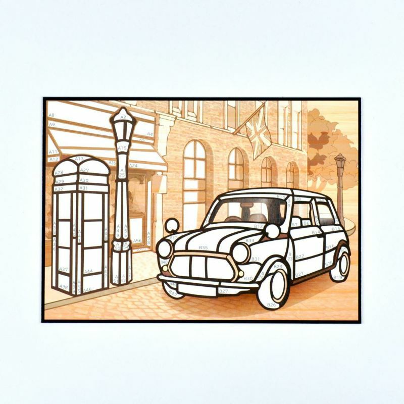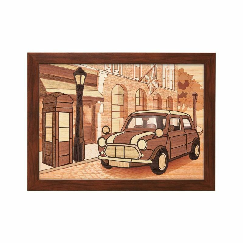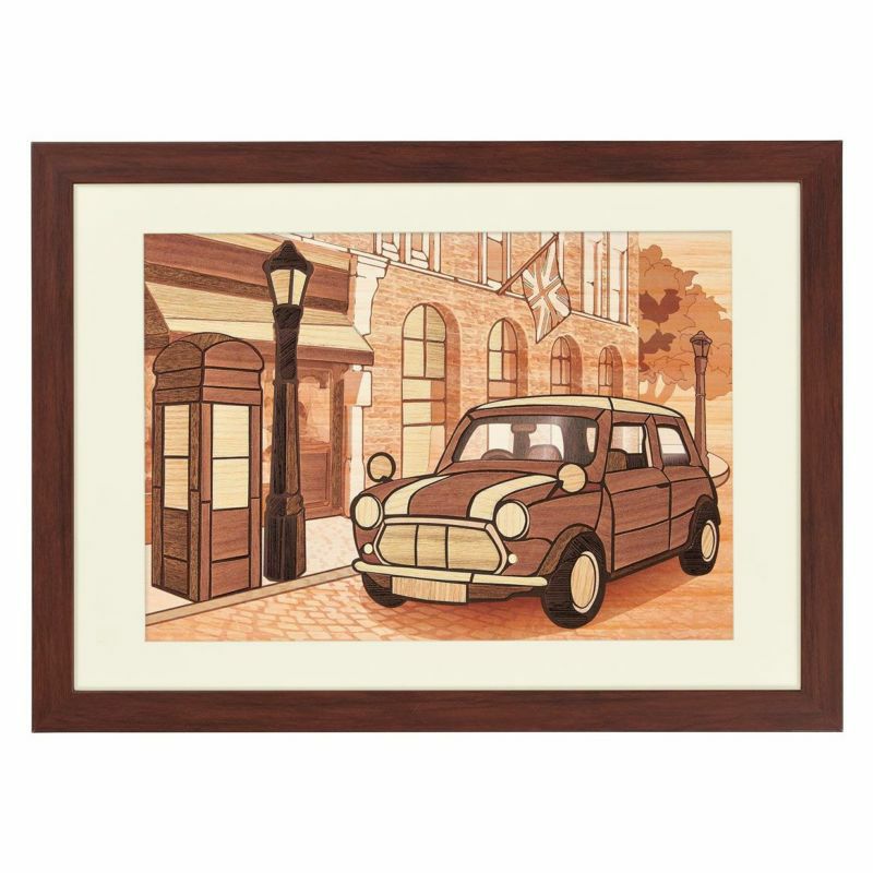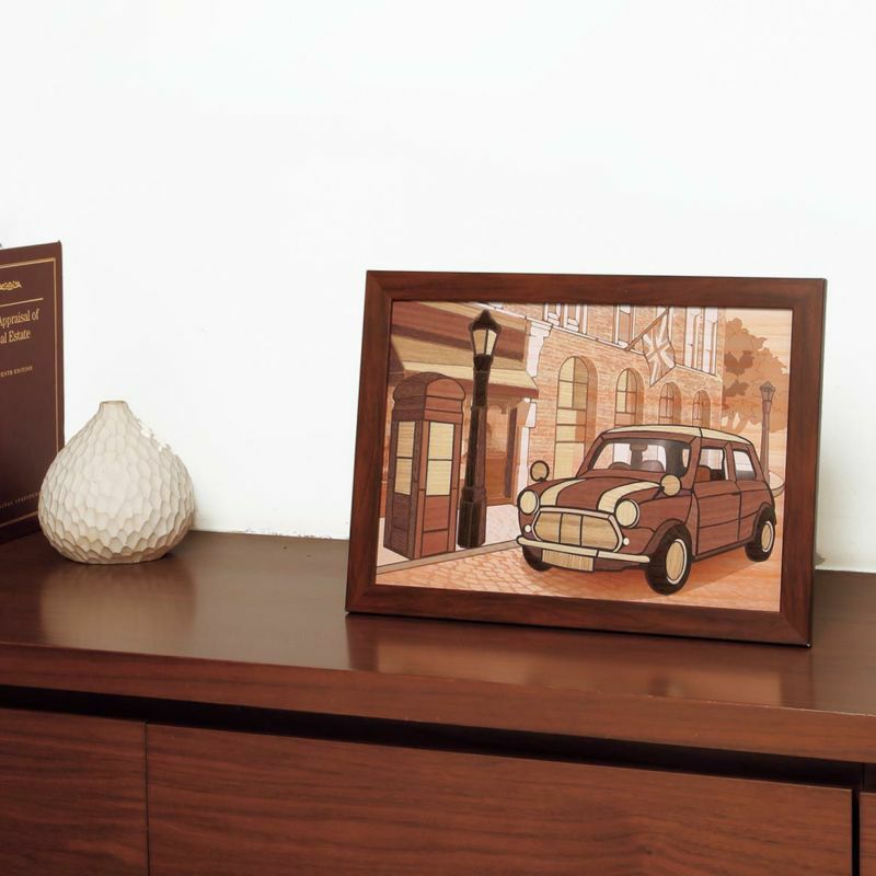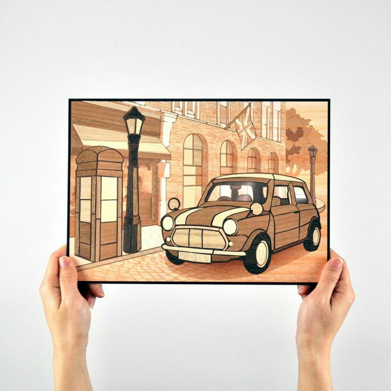 再現60年代倫敦街景時,使用了溫暖的木材質感,裝進畫框後也很適合作為室內擺設。