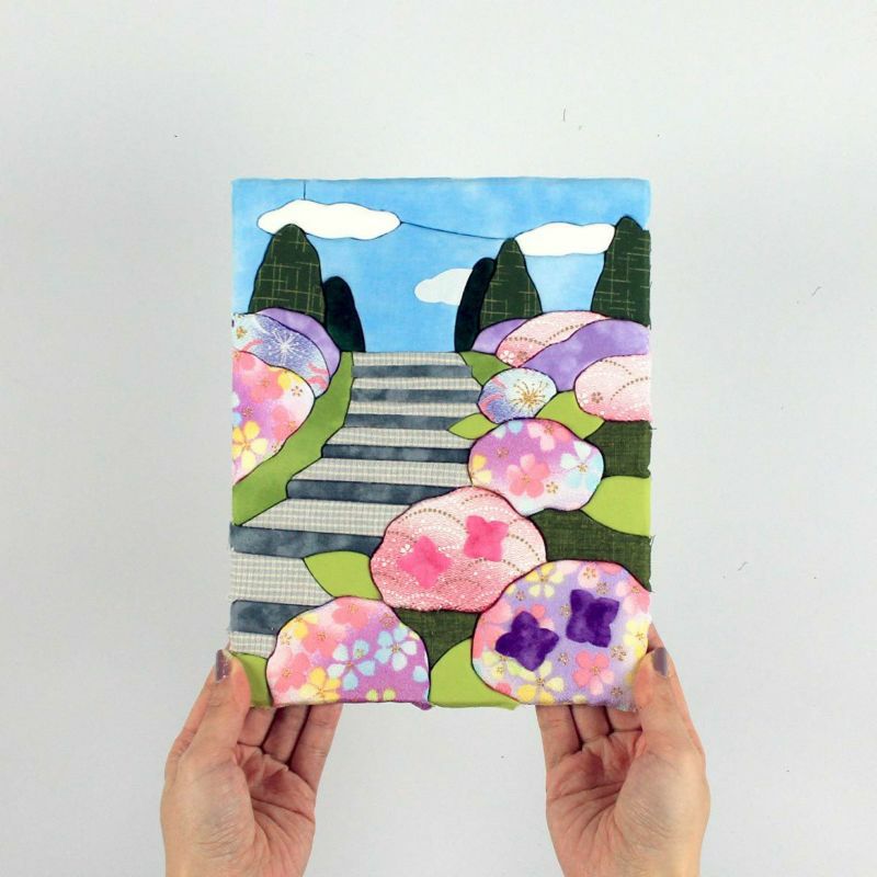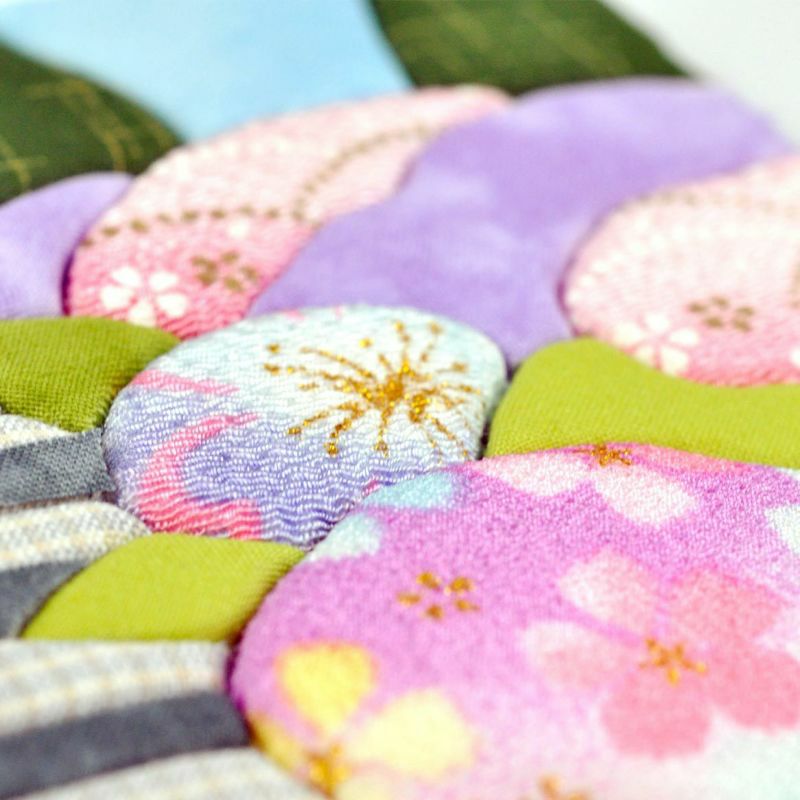 繡球花的細膩色彩,通過巧妙地運用暈染效果及縮緬布,生動再現。