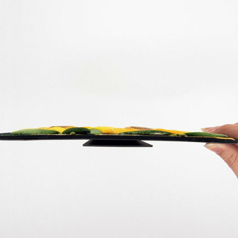 向日葵的花瓣使用了四種不同材質的黃色織錦布,增加了立體感。