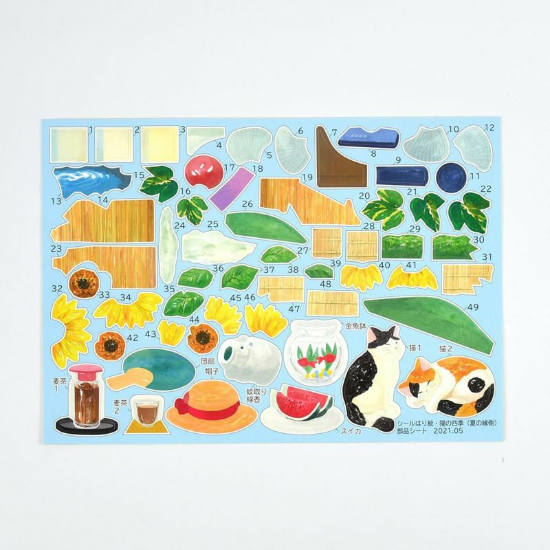 貼紙拼貼畫・貓之四季(夏日的廊下)