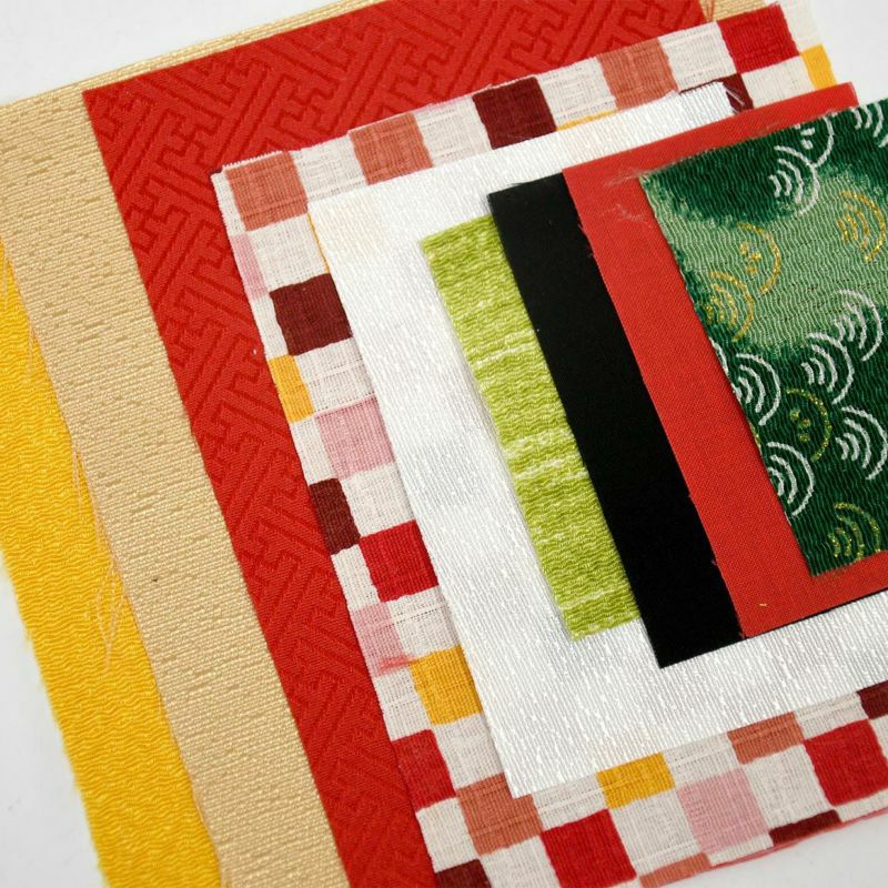 背景使用了象徵【子孫繁衍】的吉祥紗綾形和市松格紋布料。