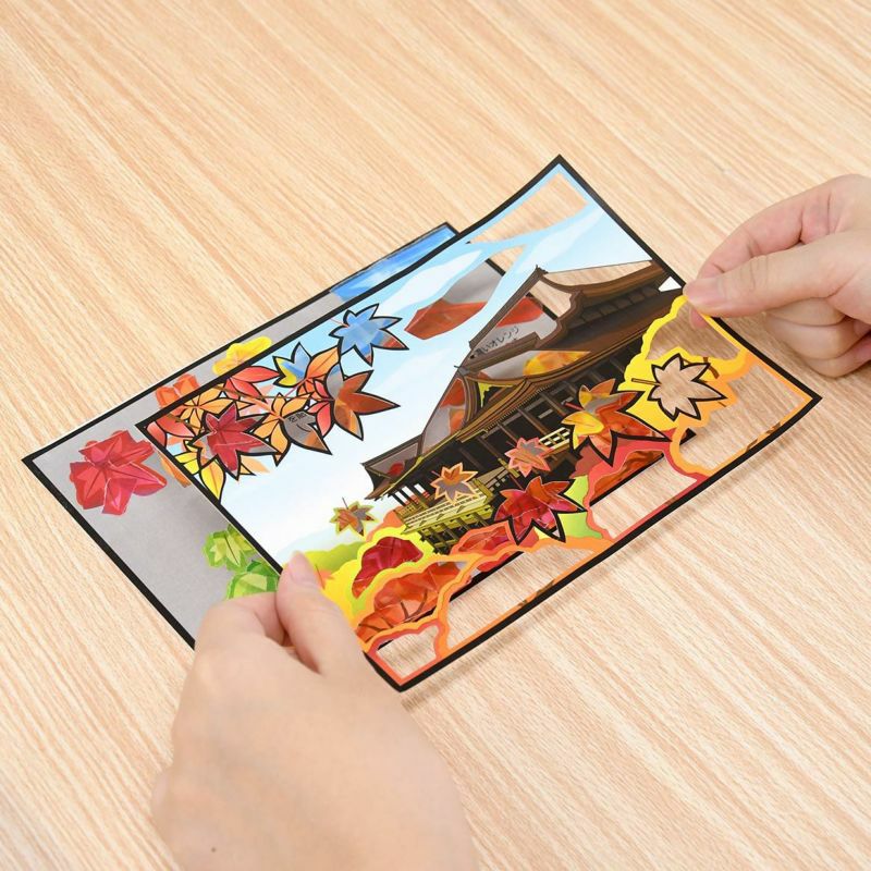 以以紅葉著名的京都清水寺為主題。利用「撕貼藝術」的優點,只需撕貼貼紙就能創作出高品質的圖案。