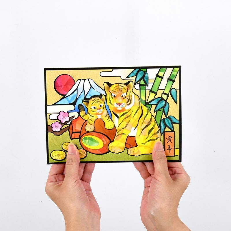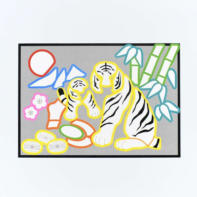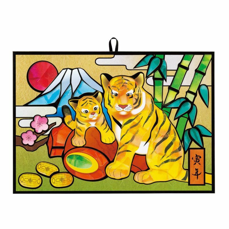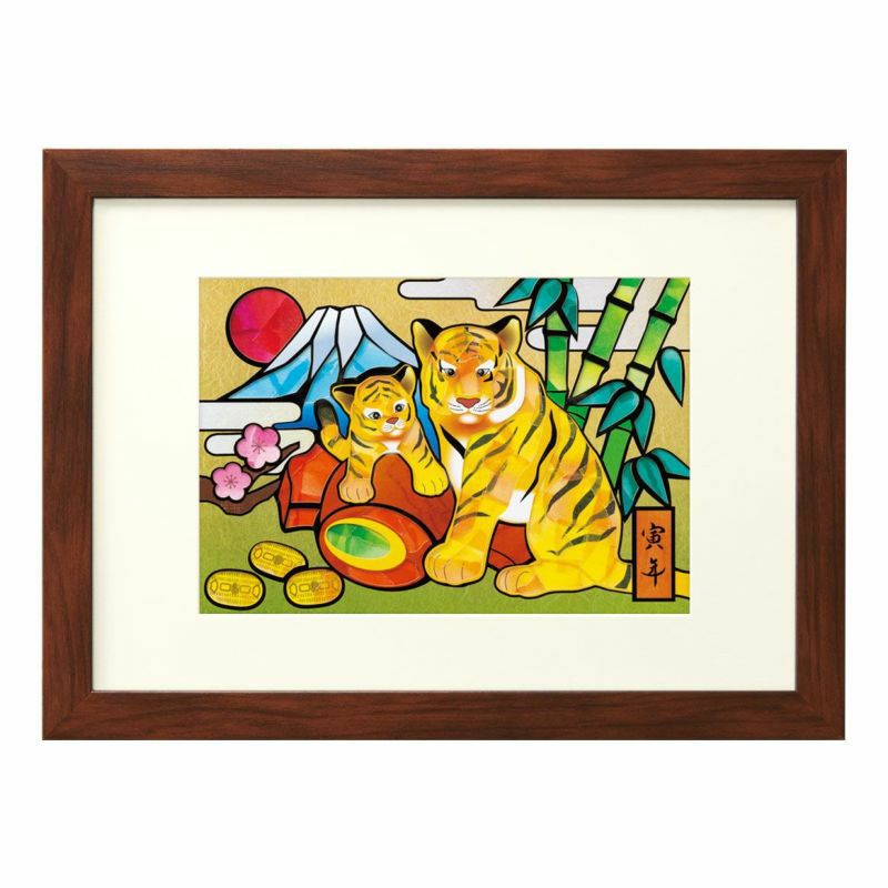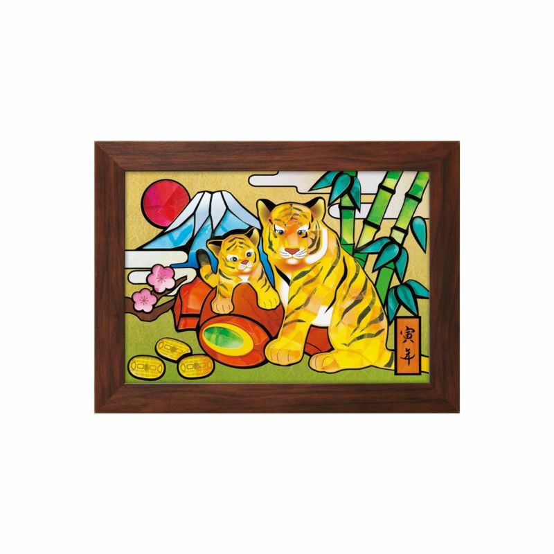 描繪著穩重的母虎與玩弄小槌的小虎,是非常可愛的圖案。竹・梅・小槌・小判・富士山・旭日等,被認為是象徵吉祥與財運的題材,也大量地融入其中。