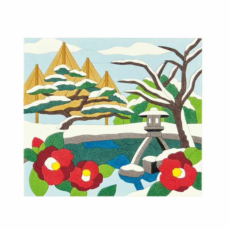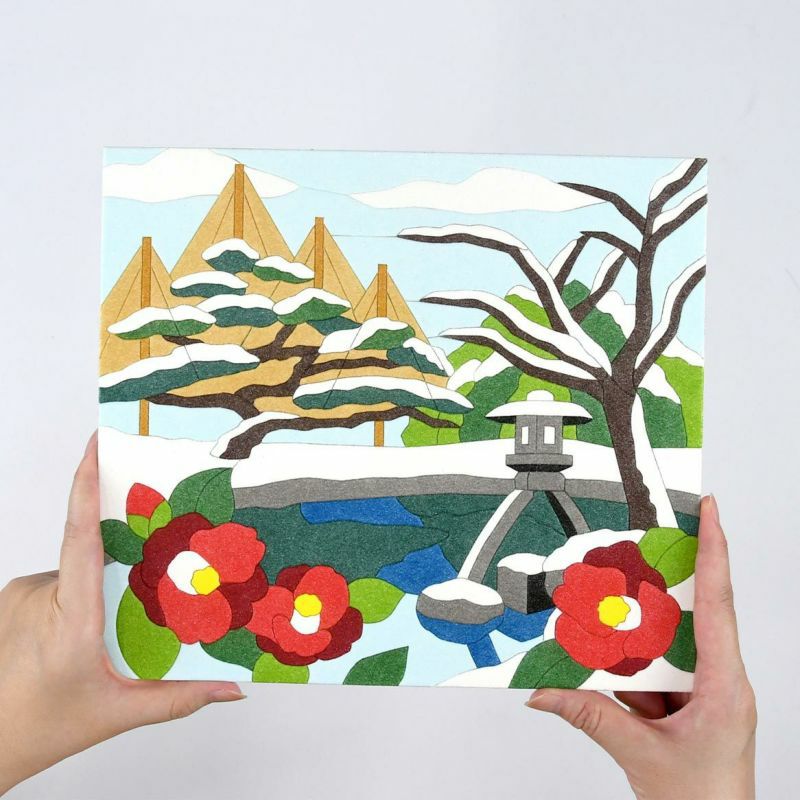 使用14種顏色的粉末來表現具有冬天特徵的兼六園雪吊。