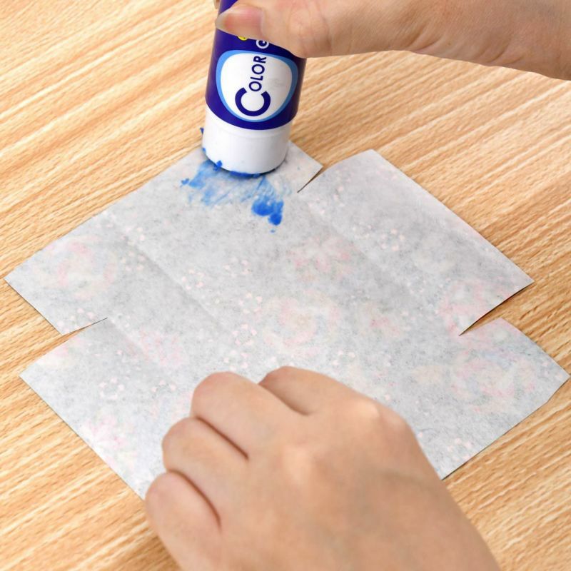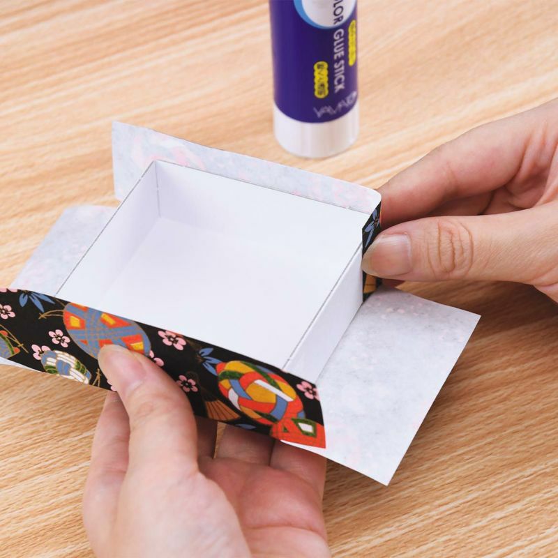 - 將剪好的和紙貼在組裝好的卡紙上。