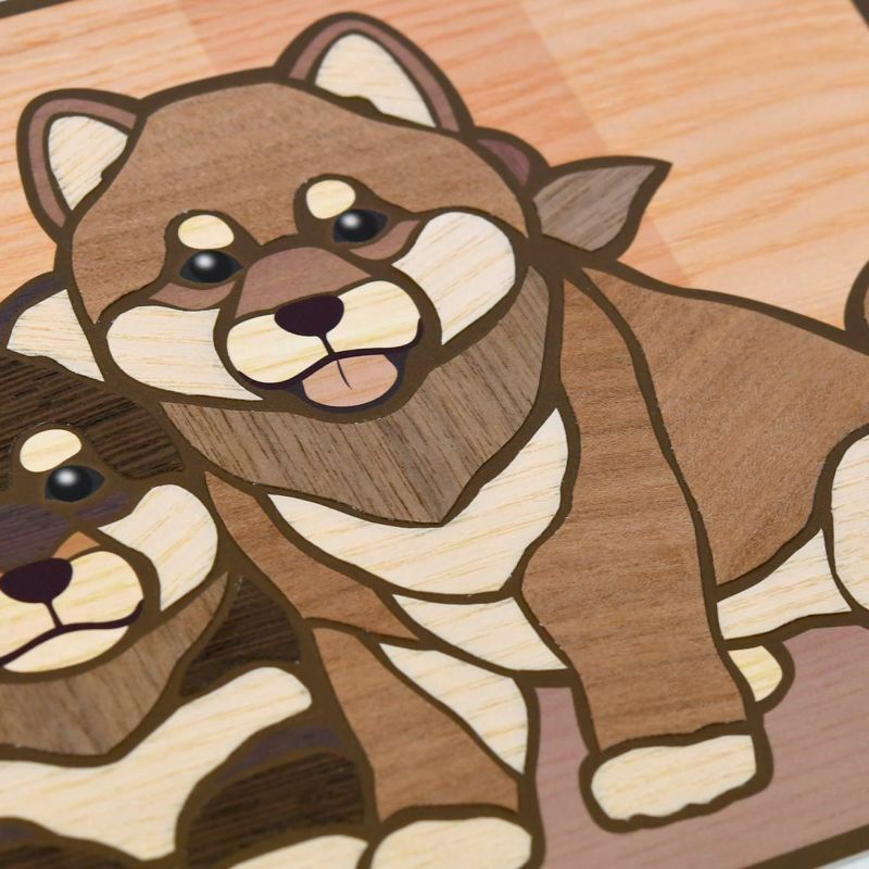 利用溫暖的木質質感來表現的柴犬,放入另售的畫框中展示作為房間的裝飾也很棒。