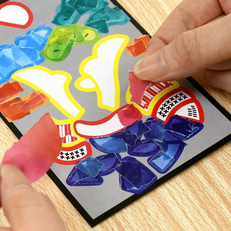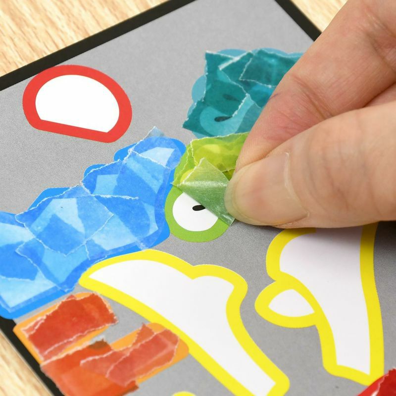 - 按照編號順序用手撕指定的顏色貼紙,貼在底圖上。