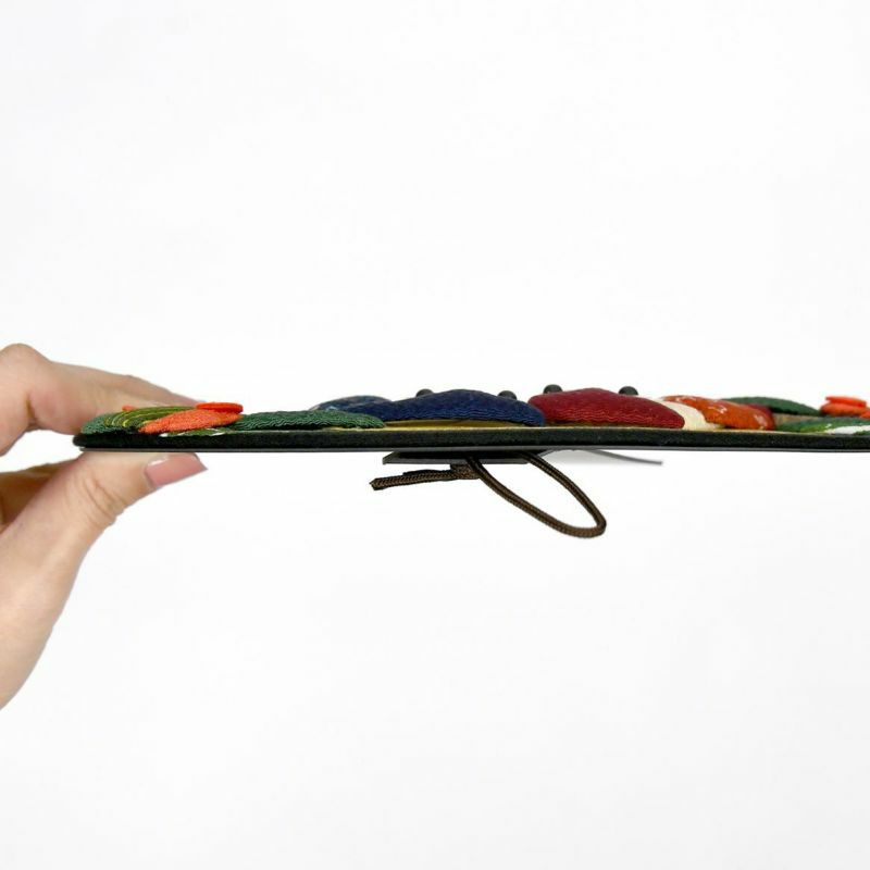 - 在未包裹部分的布料上塗上膠水,根據實物大小圖將部件重疊黏貼起來。