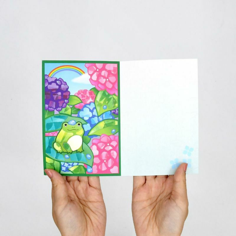 擁有「家庭團圓」花語的色彩繽紛繡球花和「帶來幸福」的青蛙可愛無比!6月是享受雨季的設計。