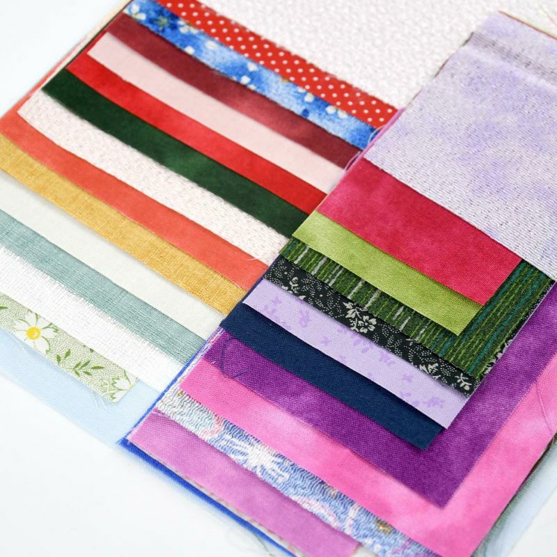 - 將紙樣從布料上取下,然後將布料填入指定的拼布板。