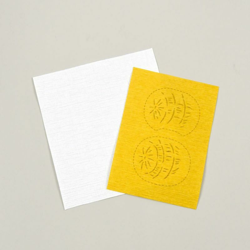 使用了經過摺皺加工的「手染搓揉和紙」。米俵的圖案和切割線都畫在和紙上,依照樣本製作即可。