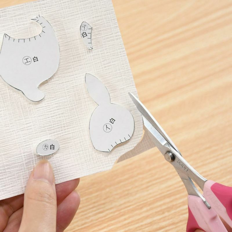- 依部件把模件分開,按指定貼在摺紙的背面。※米俵的摺紙按虛線切割。