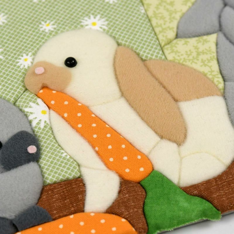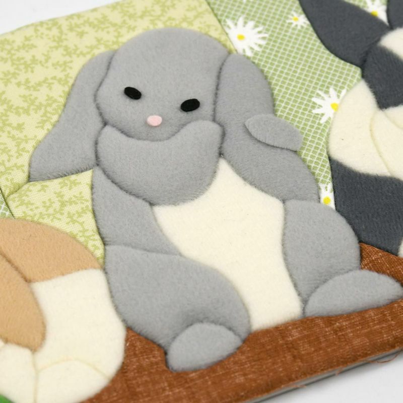 除了兔子的毛絨布料外,其它部分均使用棉布製作。鄉村風格的天然色調突顯兔子的可愛。