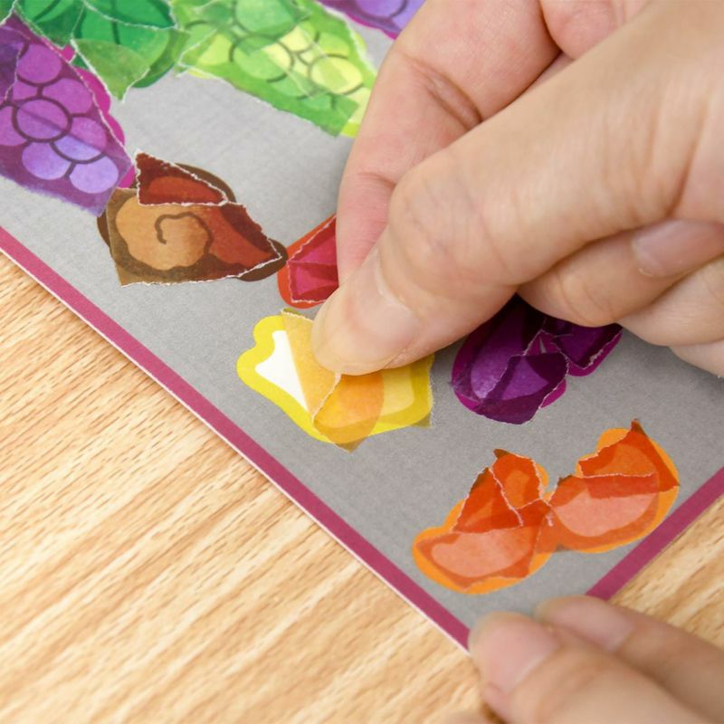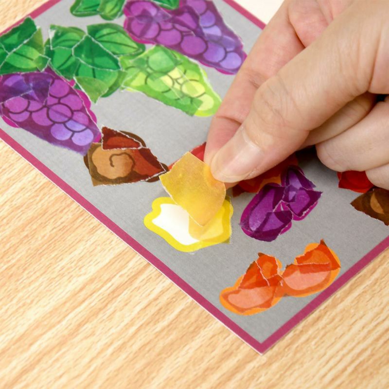 - 按照編號順序,手撕指定顏色的貼紙,貼在底圖紙上。