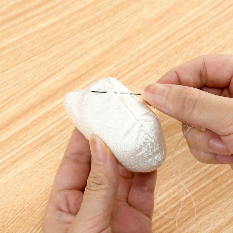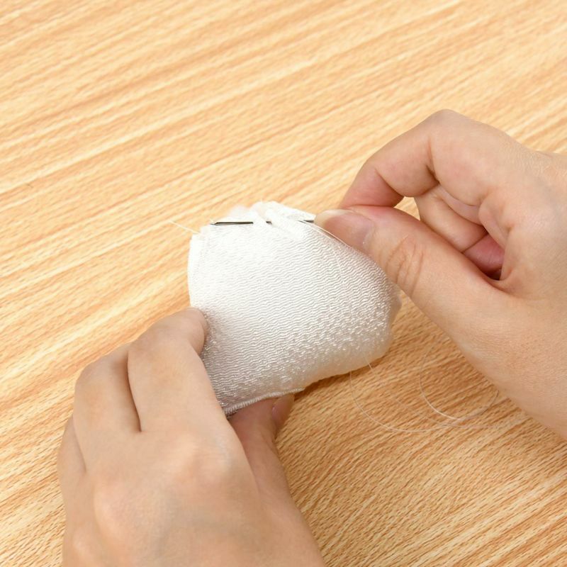 在1的步驟中填入棉花及粒料,然後拉緊縫合。