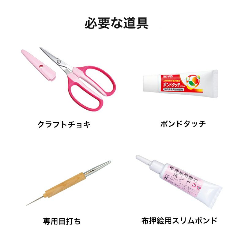 - 剪刀、膠水觸摸、錐子、布押絵用強力膠水(金襴布專用)、尺子