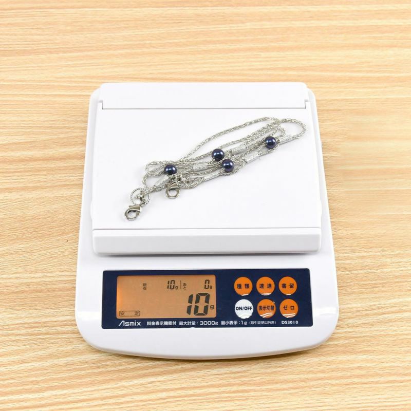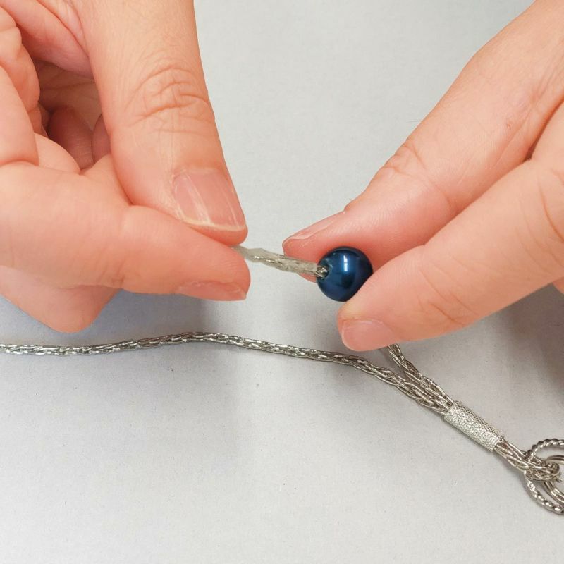 使用了午夜藍色的珍珠珠珠。為了方便穿過鏈條而進行了大孔加工。大洞避免了壓力!