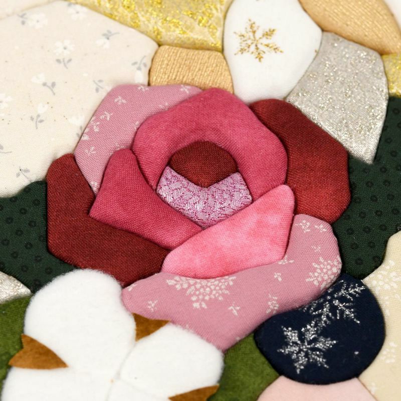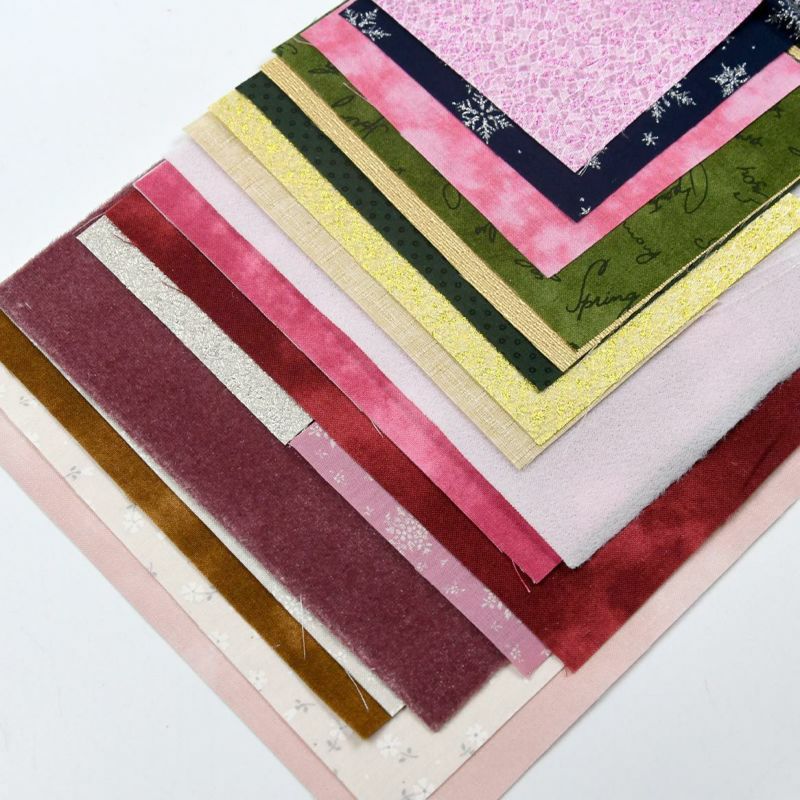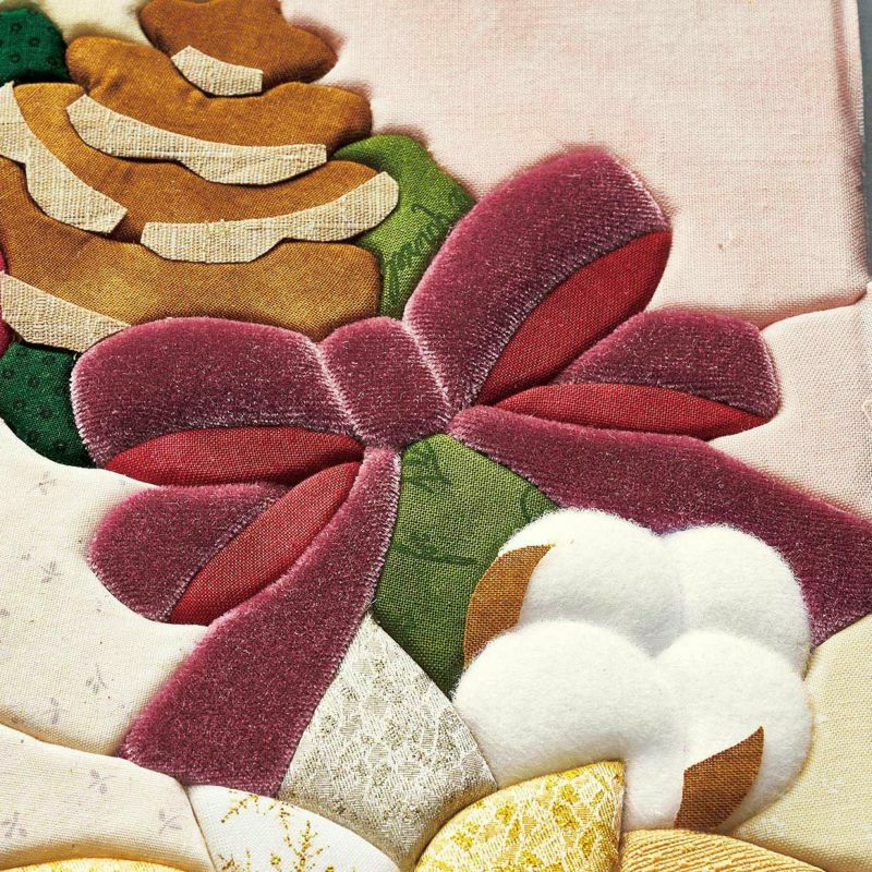 使用了19塊不同材質的布料,包括棉花、棉布、天鵝絨和提花布。可以享受不同的拼布感覺。