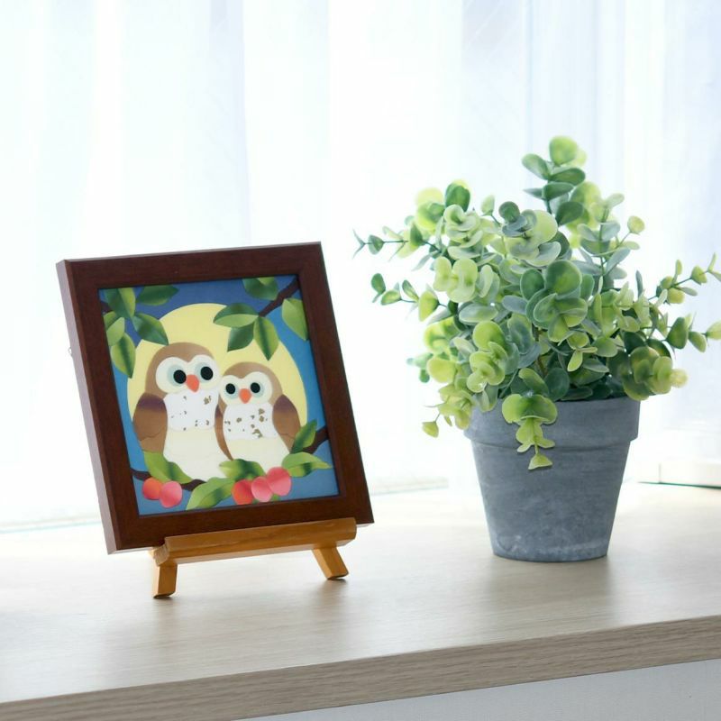 和紙拼接畫・貓頭鷹親子情深