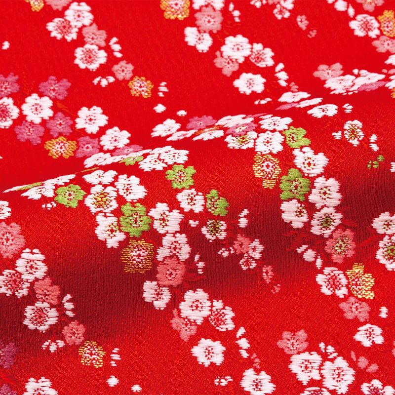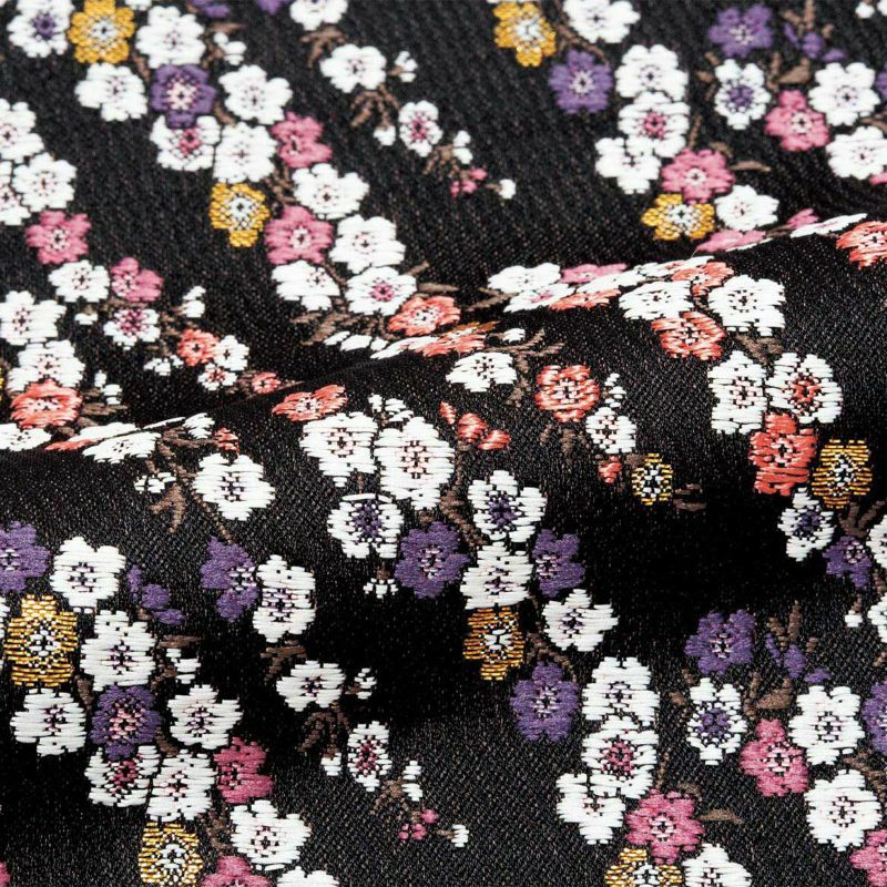 在布料上也下了功夫,和服採用華麗的京都・西陣的錦緞布料。圖案是「櫻花圖案」的共柄。