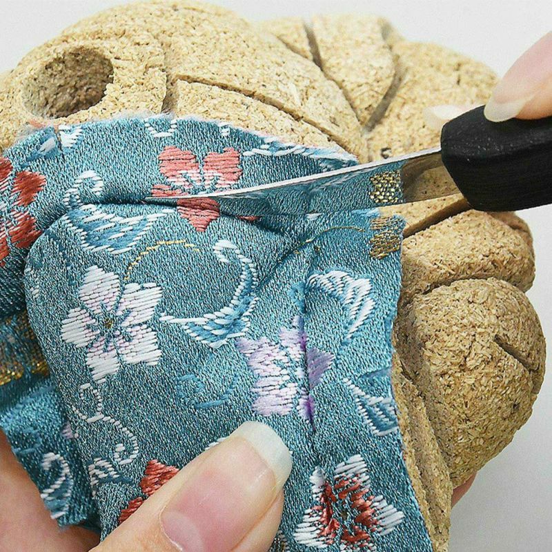 - 用木目込み鏟刀將布料固定在溝中,多餘的布料用細剪刀剪掉。