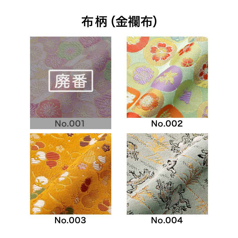 可以從4種豪華的緞金布料中選擇自己喜歡的圖案製作。