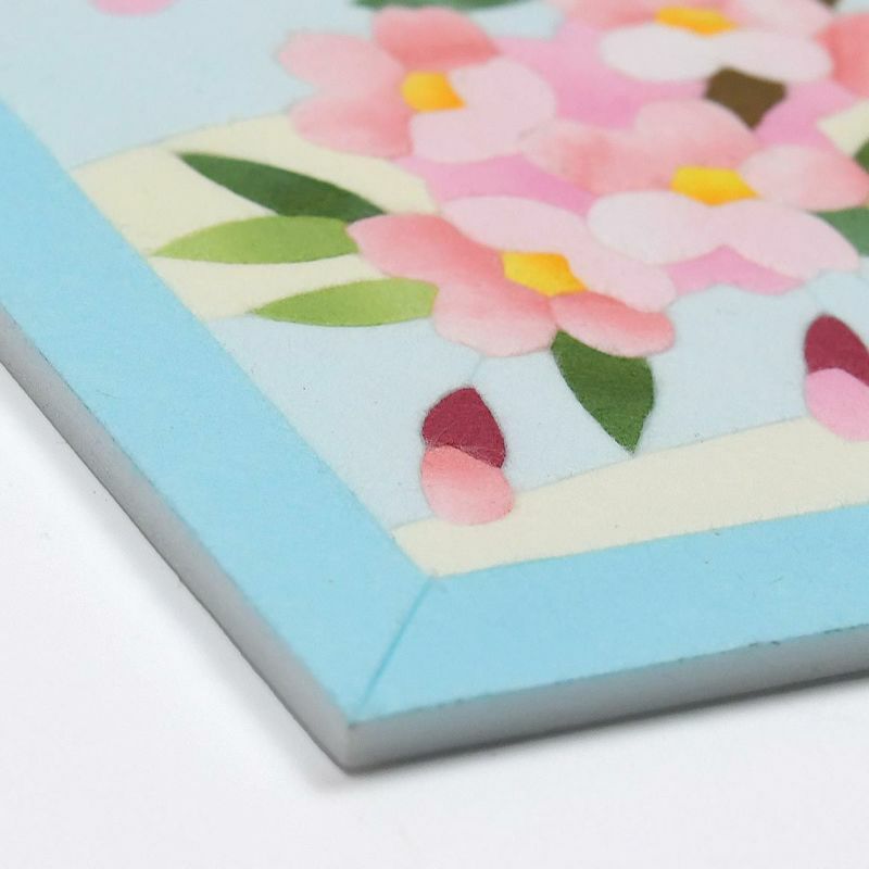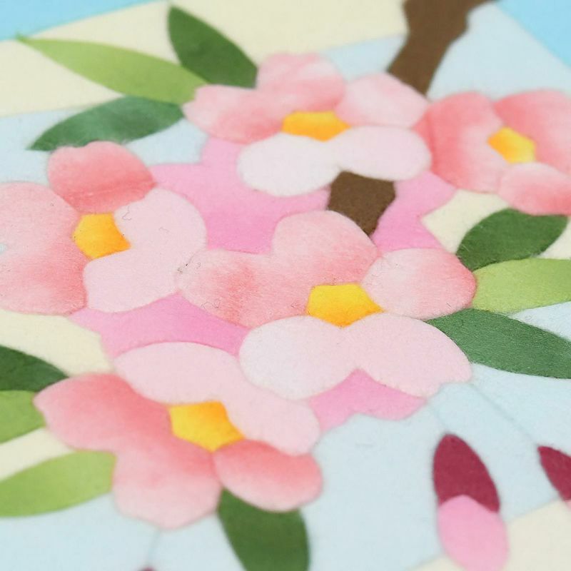 整體以淡雅色調的和紙製作,纖細地表現出春天柔和光線中盛開櫻花的美麗。