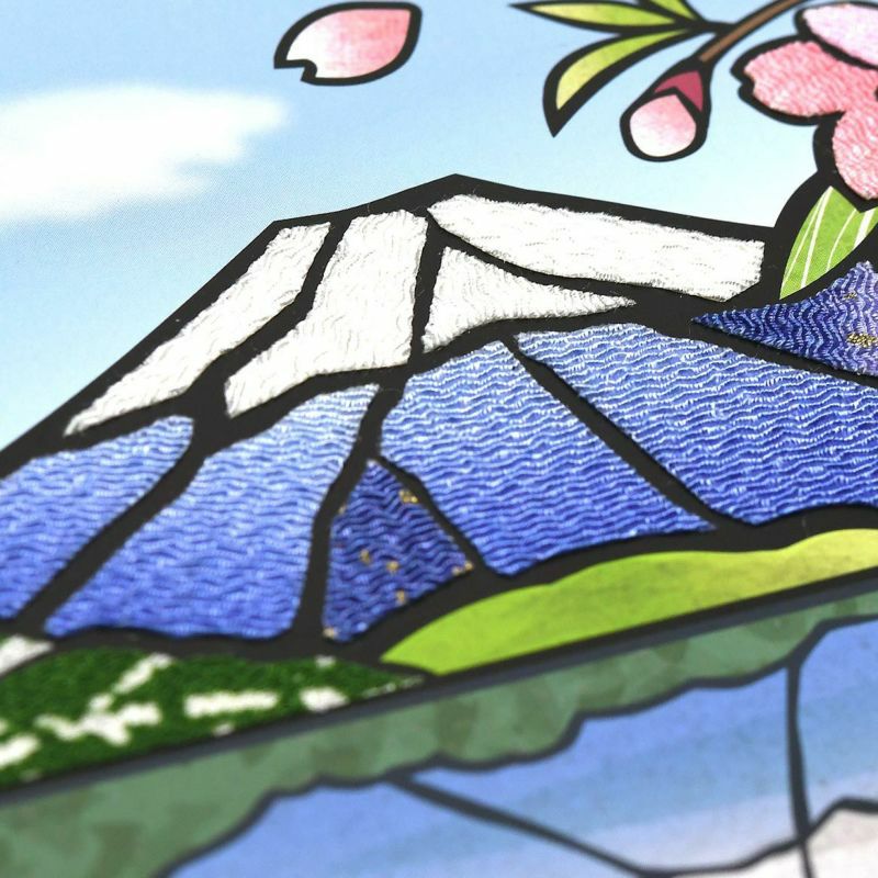只需簡單的切割和粘貼步驟,就能製作出精緻布畫,這是「櫻花藝術」的 A5 尺寸。日本代表性的富士山與櫻花的原始風景。感受到越過寒冬的春天的喜悅。