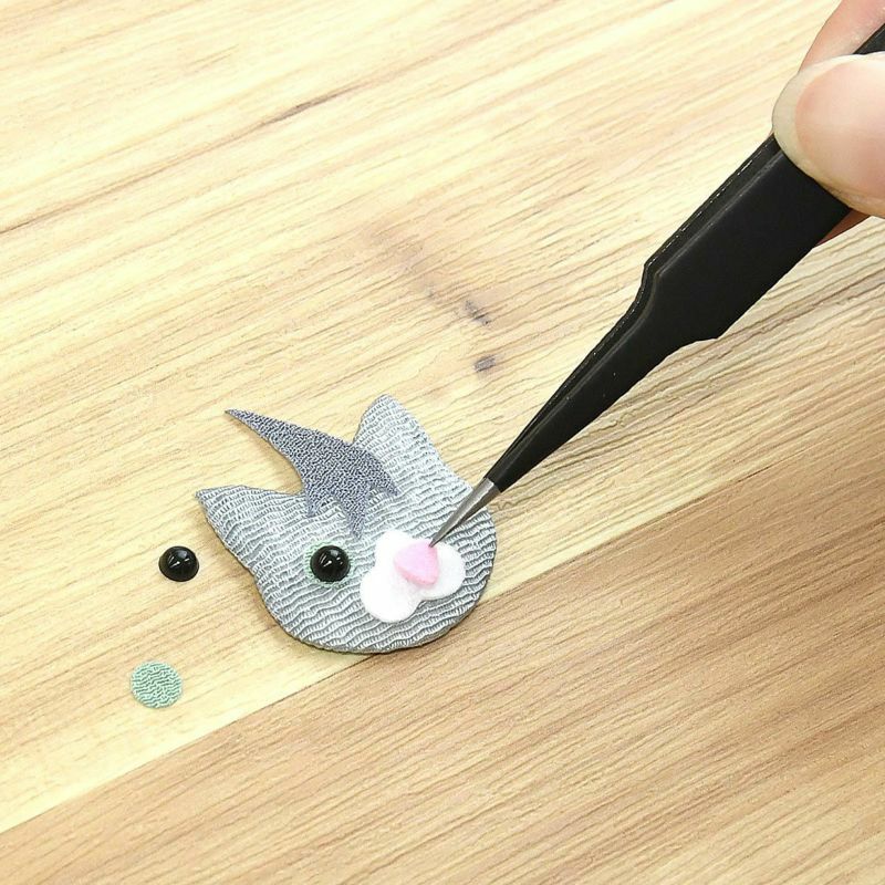 貓的花紋、眼睛和鼻子等細節部分由黏合的小部件製作。