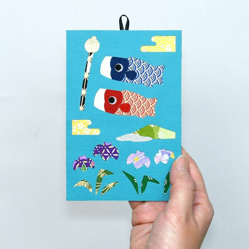 可以輕鬆裝飾在任意地方的節日裝飾品。高雅的藍地底色上映襯的鯉魚旗和菖蒲,為你的房間增添色彩。