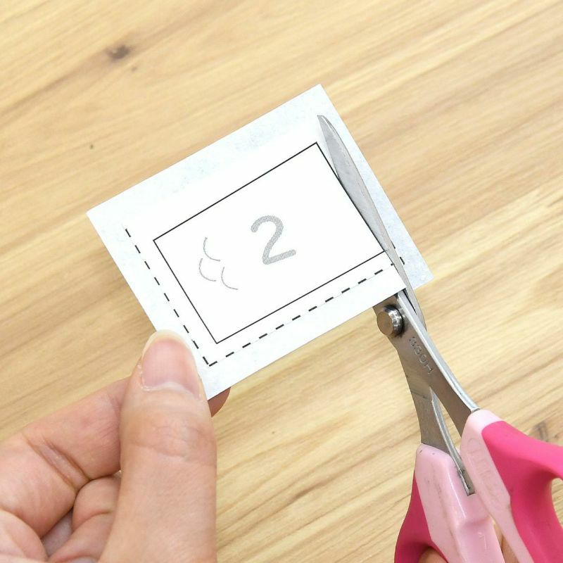 - 沿著模版貼紙的實線切割和紙。