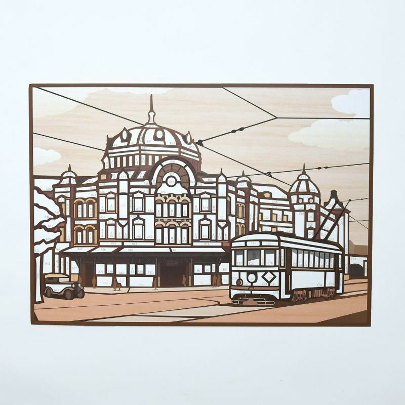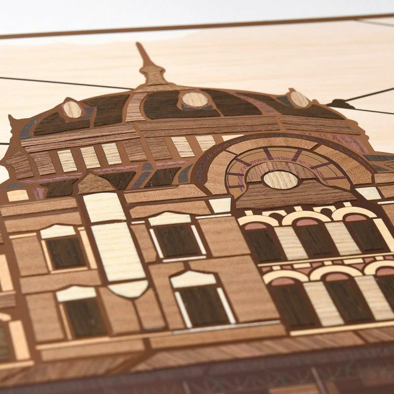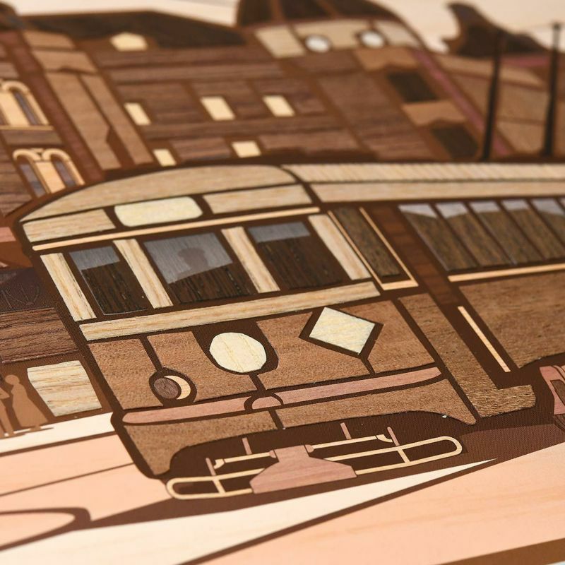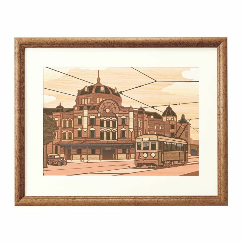 加入了以深紅色為特色的天然木片「布賓加」,表現東京車站站舍的紅磚。即便是熟悉製作天然木片藝術「櫻花工藝」的人,也可以新鮮感十足地享受製作過程。