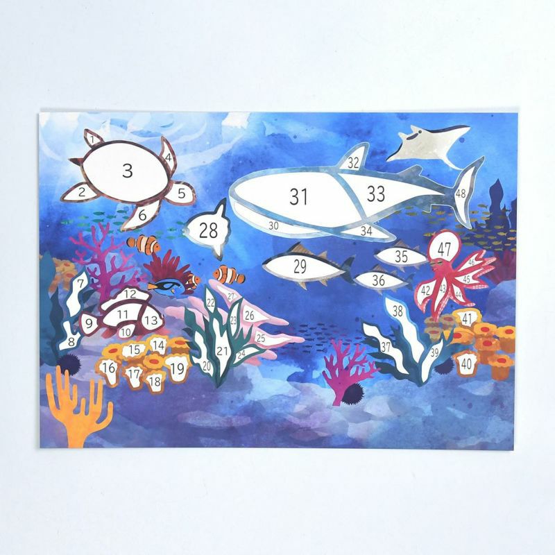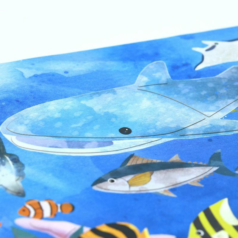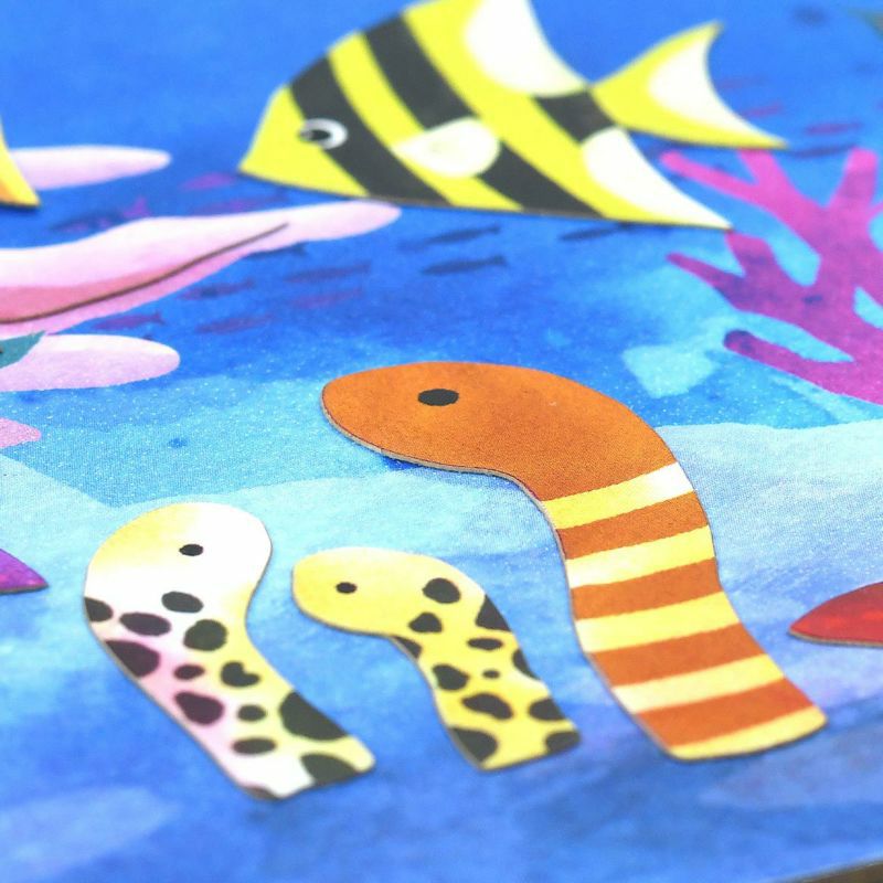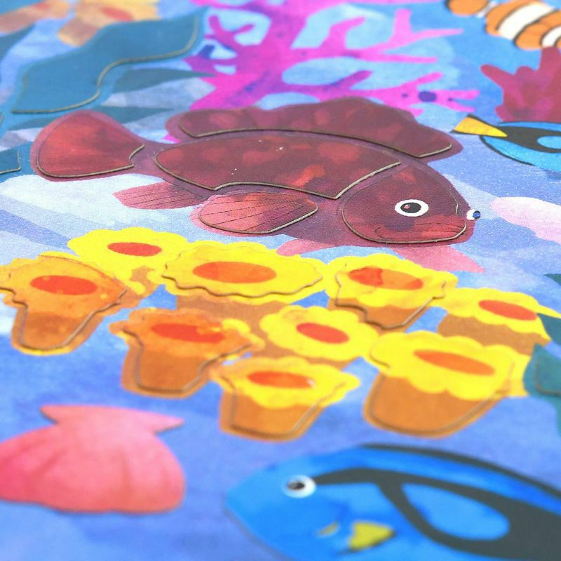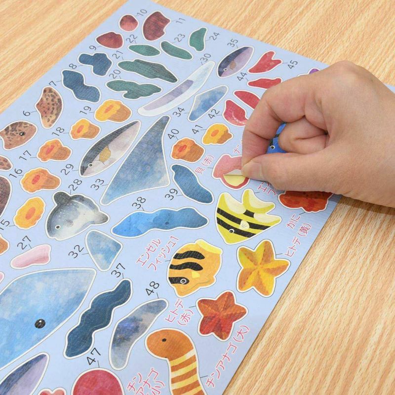 底部的貝殼、海星和螃蟹等部分生物沒有指定位置,可以自由貼在喜愛的地方,享受創意樂趣。