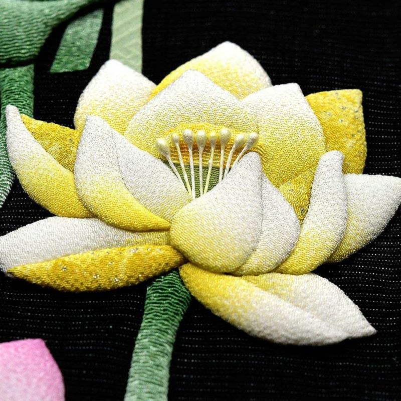 季節繽紛的花卉掛毯。「純潔的心」語言花語的蓮花,从淤泥中開出美麗的花朵。這正是讓人感受到其嬌美與堅強的一個姿態。這樣的蓮花,以豐滿立體感的押絵來表現。