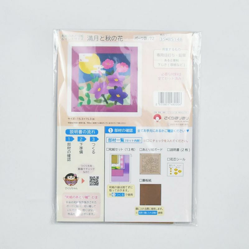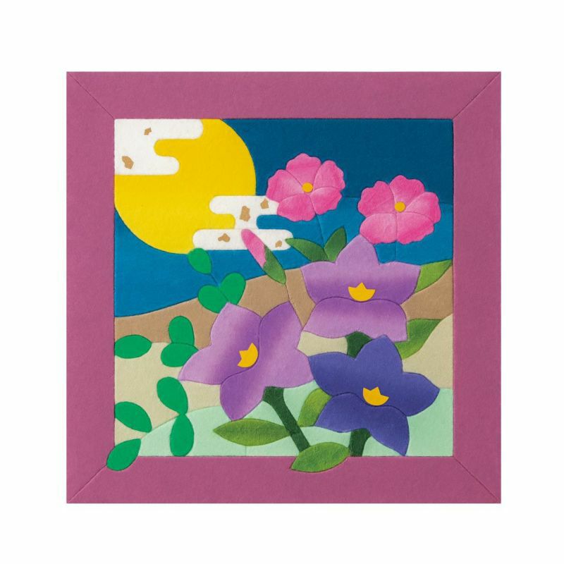 和紙的畫圖剪紙,只需一根目打工具就能「輕鬆」用「單手」完成和紙藝術。秋夜空中的撫子和桔梗在滿月照耀下美麗綻放。