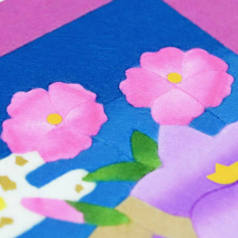 使用匠人手染的國產和紙,「板締染」和「暈染」等技法,共需13張和紙,以呈現秋季花卉。