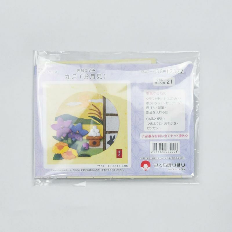 以月份享受季節景物的「押繪日曆」系列。9月是在廊下擺放的秋草和熱鬧的賞月。兔子們也以可愛的剪影參加其中。可收集整個系列享受其樂趣。