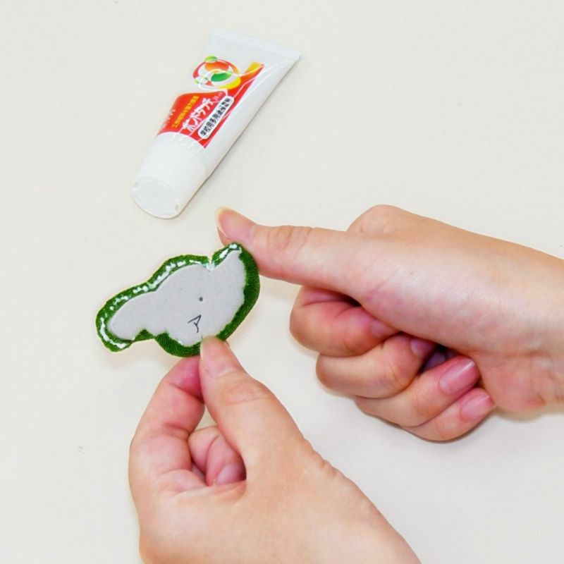 - 將帶有泡棉的模板(以下 切割零件)取下,貼在指定的布料背面。