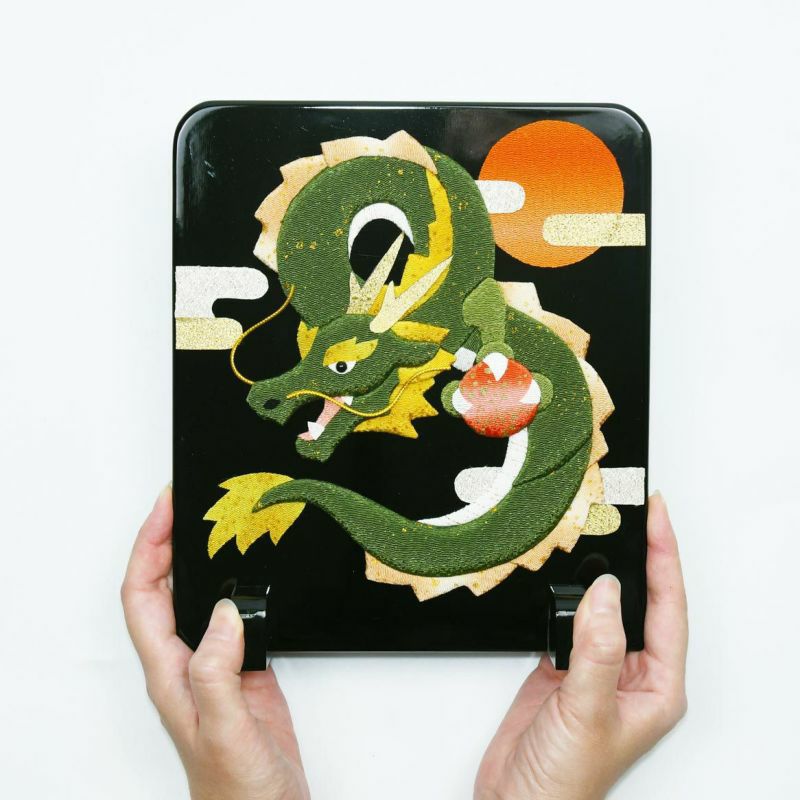 在充滿光澤的黑色屏風上,威武的龍顯得格外迷人。