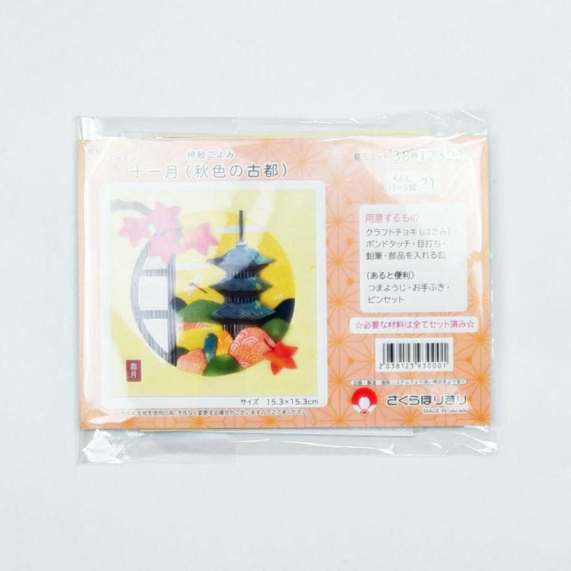 每月欣賞季節風物詩的“押繪曆”系列。11月是從圓窗看到紅葉的色彩和三層塔的美麗晚秋景色。可以系列收集享受。