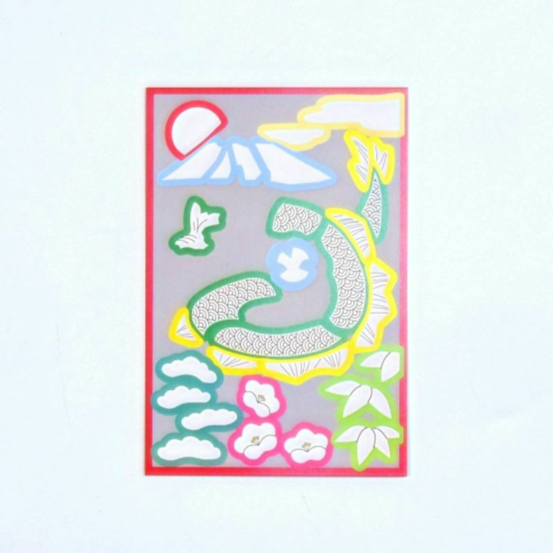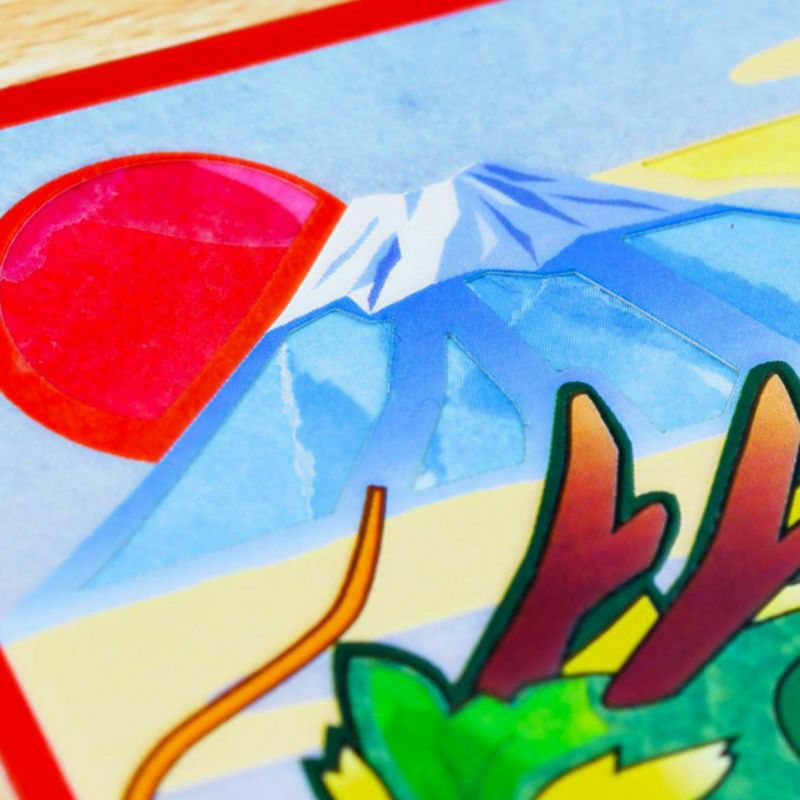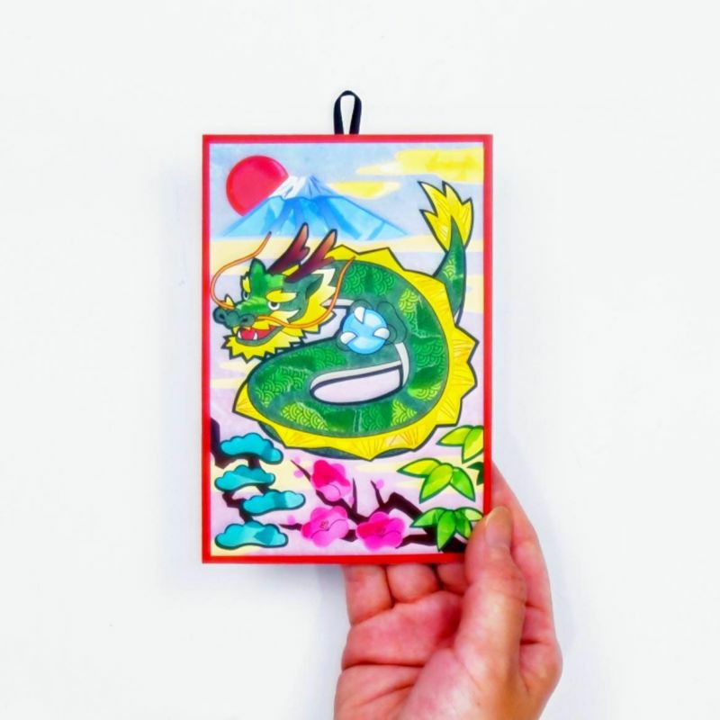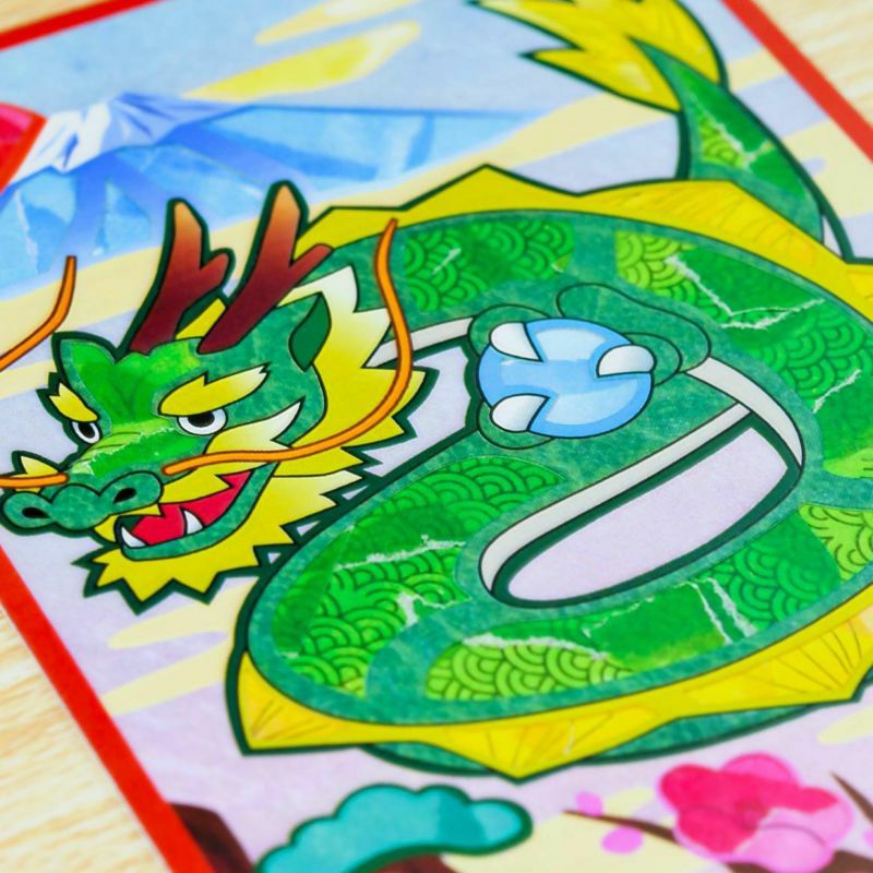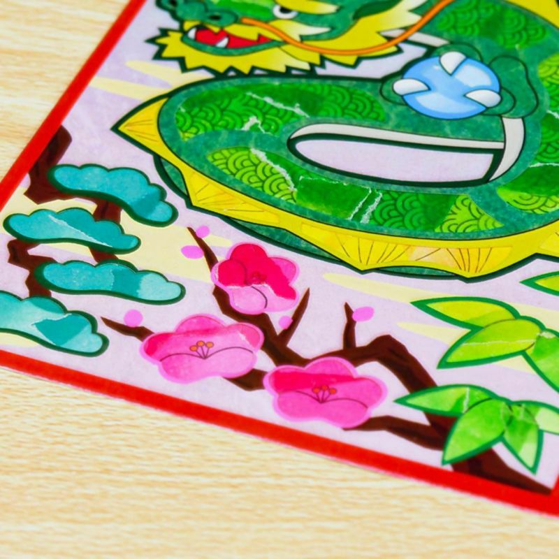 龍的圖案等在底圖上已經預先印刷好。將單色貼紙貼上後,圖案會浮現出來。