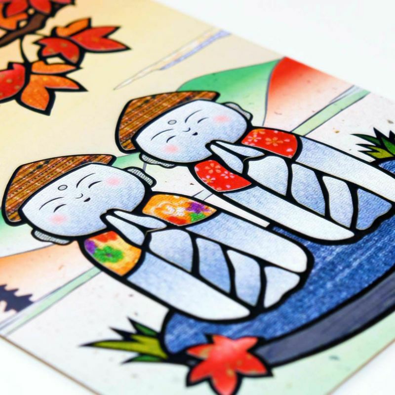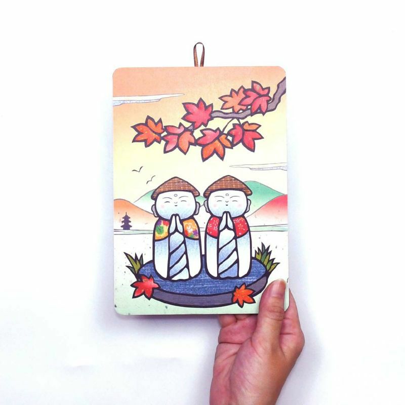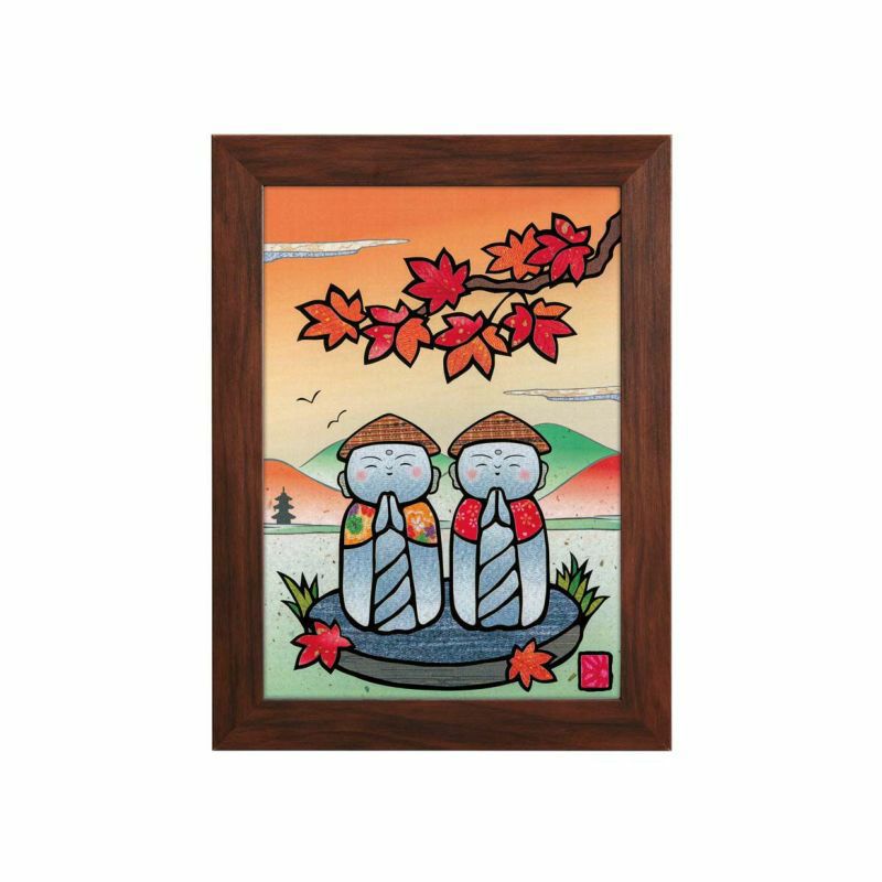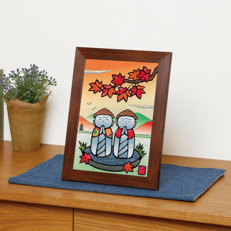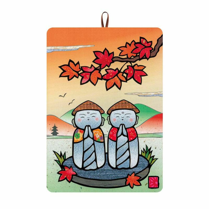 11月在夕陽下紅葉環繞的微笑地藏菩薩讓人舒心。