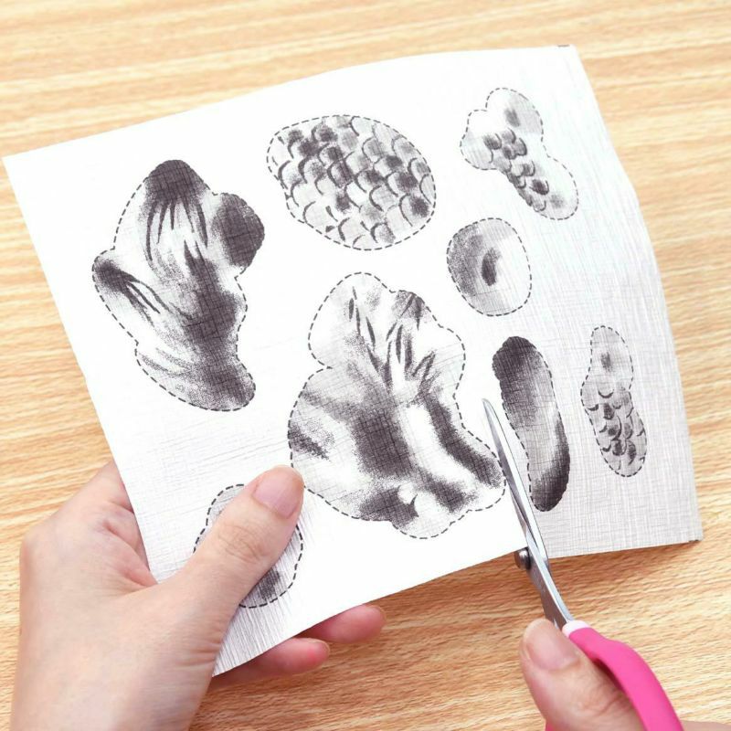鱗片等圖案已預先印刷在“染紙和紙”上,因此可以按照範本製作。